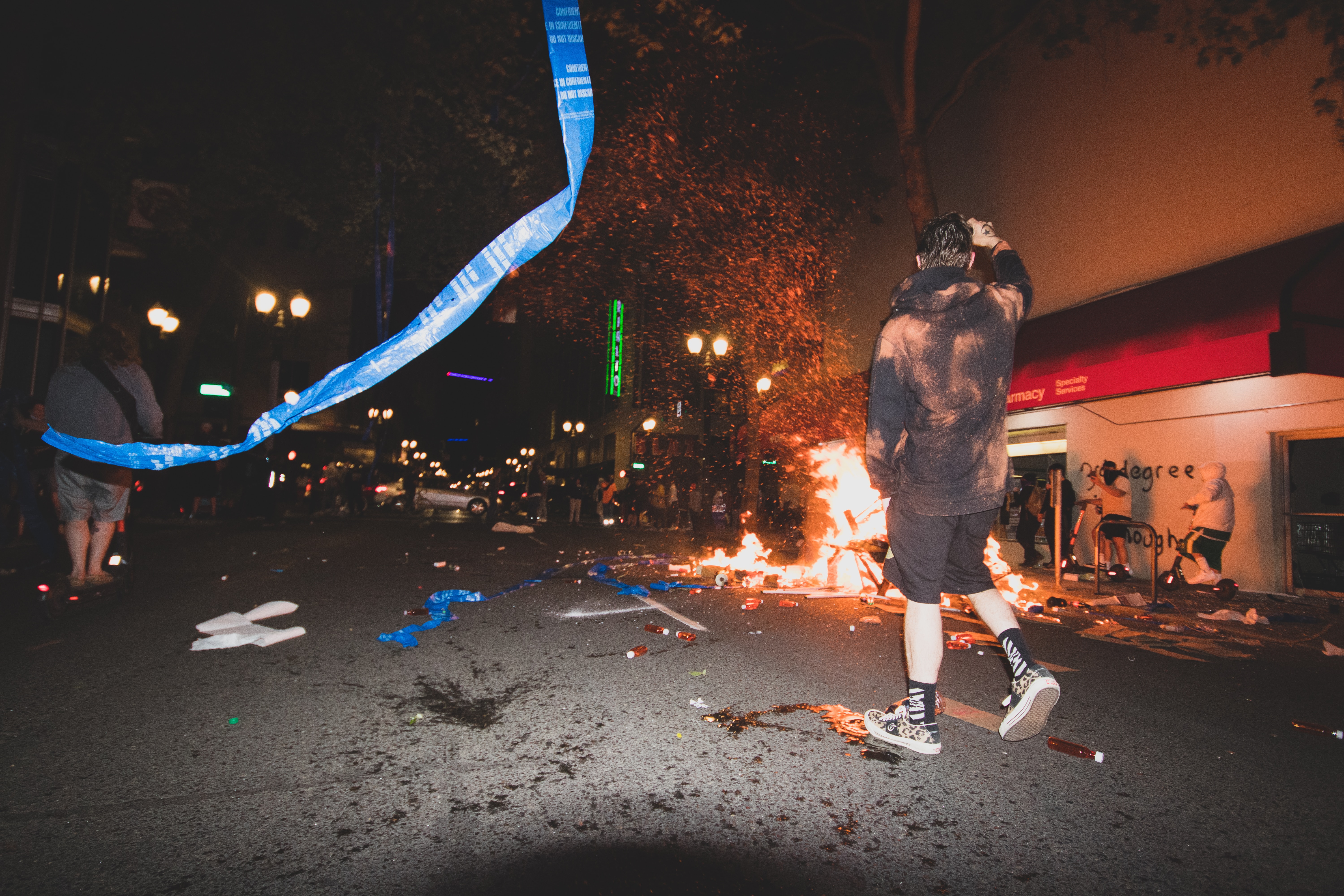 1. The rioters caused mayhem in the city streets, looting and destroying property.